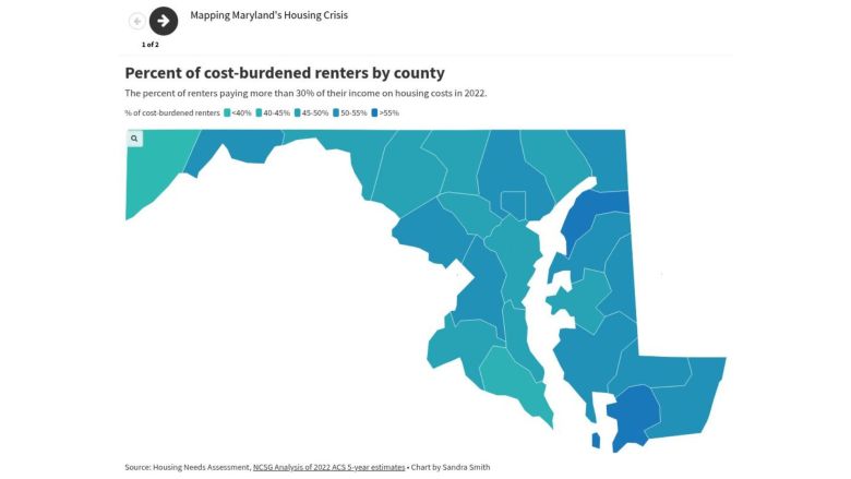 In more than half of Maryland counties, renters are spending more than one-third of their annual income on housing costs, which is considered unaffordable by federal standards.